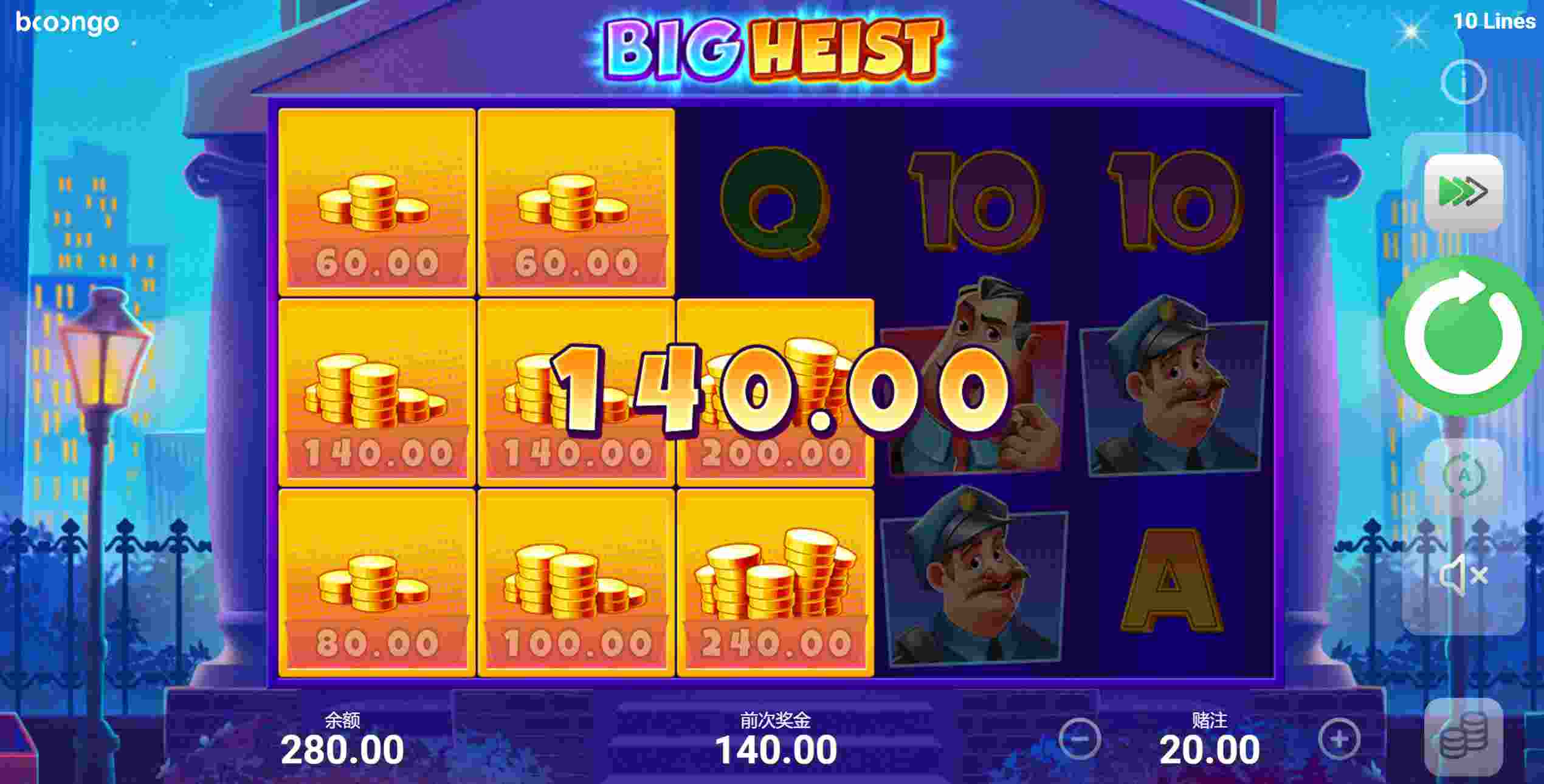 玩家每次收集到四個小偷或老大符號時,將觸發金幣收集倍數的提升,從2倍、3倍到10倍,讓贏獎的樂趣隨著遊戲進行不斷升級。