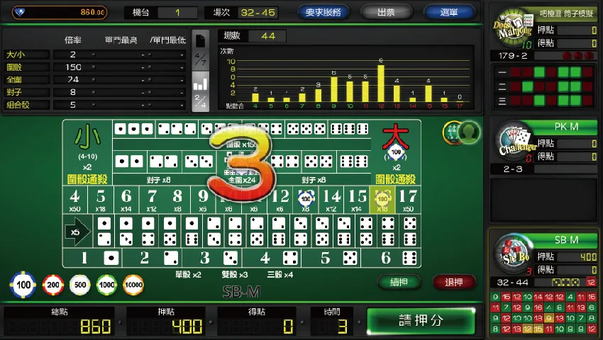 點數投注:雖風險較高,但一旦開出多顆同點數,回報可達數倍,是喜愛高風險的玩家最佳選擇。